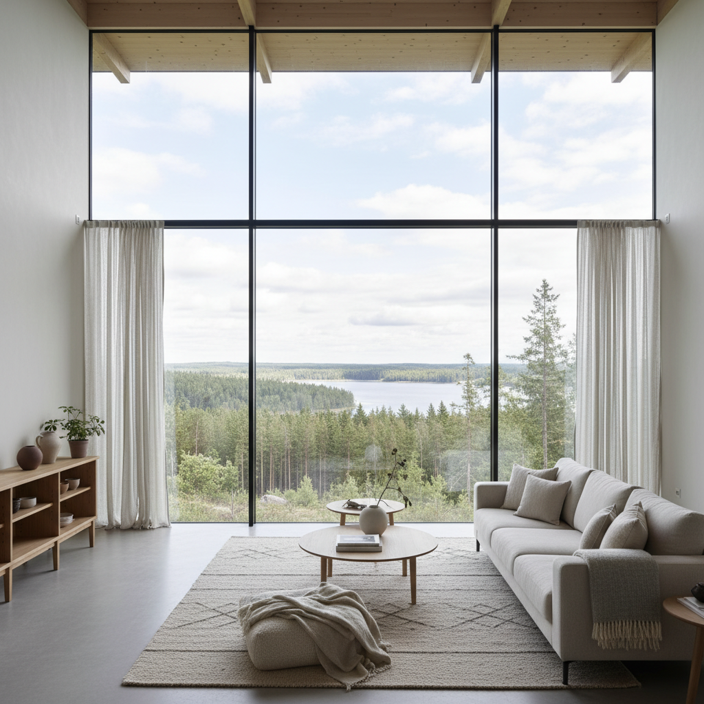Maksimal udsigt Hele synsfeltet udnyttes - fra gulv til loft. Har du en smuk have, skov eller havudsigt, bliver den en integreret del af rummets æstetik.